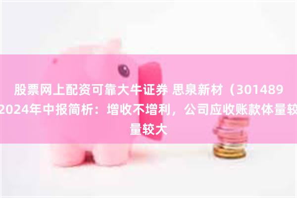 据证券之星公开数据整理,近期思泉新材(301489)发布2024年中报。截至本报告期末,公司营业总收入2.16亿元,同比上升11.48%,归母净利润2290.63万元,同比下降4.04%。按单季度数据看,第二季度营业总收入1.22亿元,同比上升28.13%,第二季度归母净利润1303.71万元,同比上升17.81%。本报告期思泉新材公司应收账款体量较大,当期应收账款占最新年报归母净利润比达292.1%。